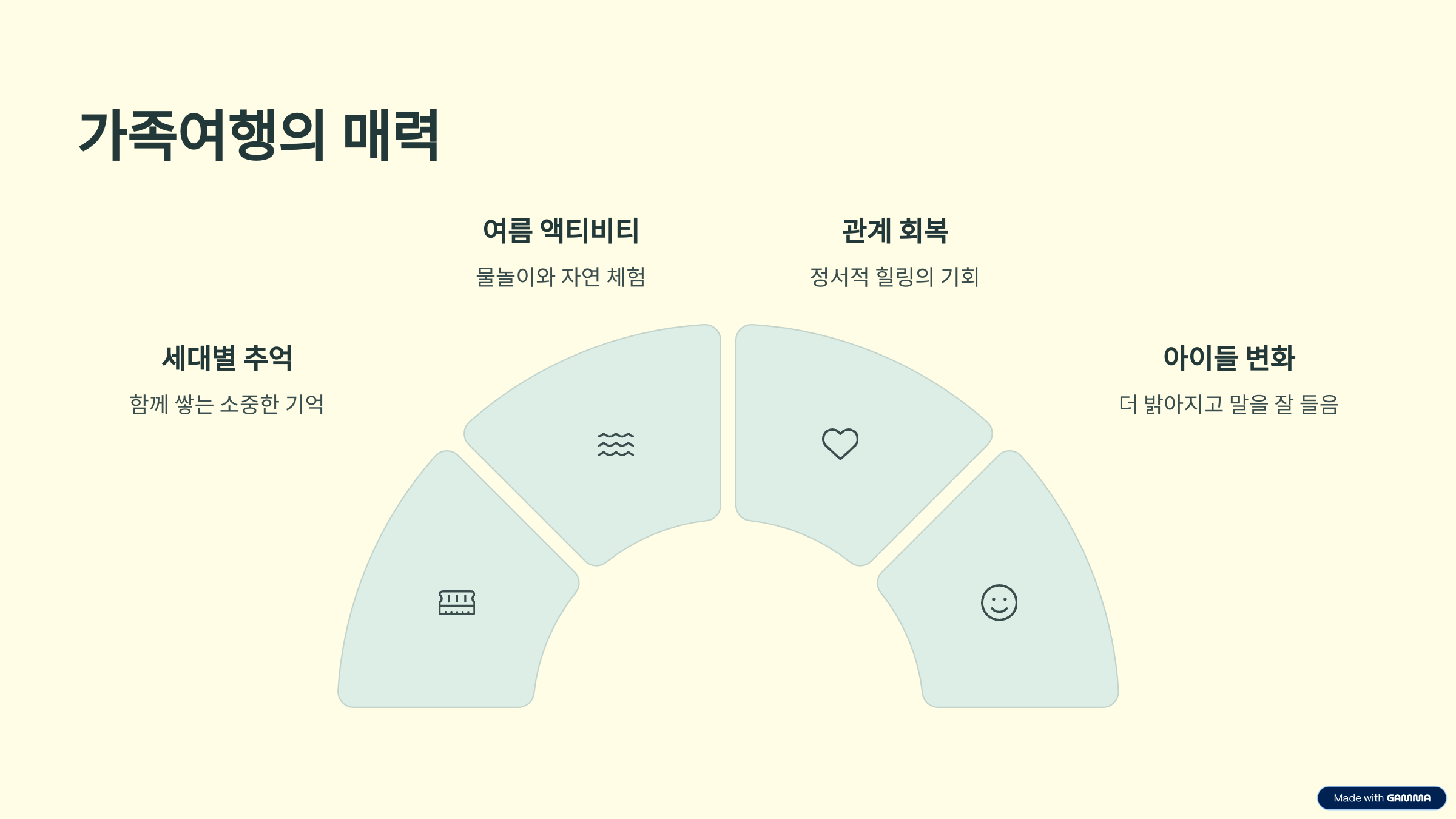 무엇보다 가족여행은 세대별로 추억을 함께 쌓을 수 있다는 게 가장 큰 장점이에요. 🧳 특히 여름에는 물놀이와 자연 체험이 다양해서 아이들이 신나고, 부모님도 쉴 수 있는 곳이 많죠.