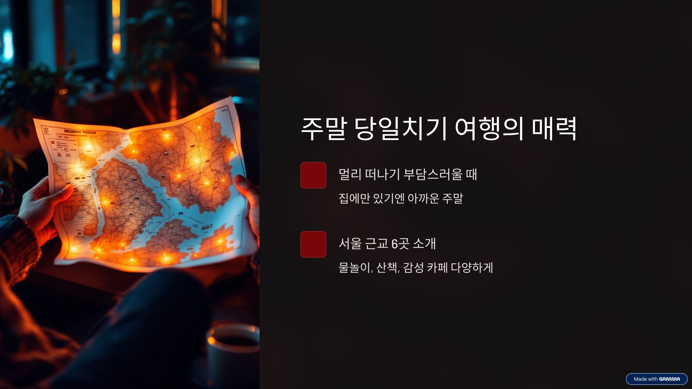 여름날, 어딘가 훌쩍 떠나고 싶은 순간이 있잖아요. 그럴 때 꼭 멀리 가지 않아도 괜찮아요. 서울 근교에는 하루만에 다녀올 수 있는 멋진 여행지가 정말 많거든요. 오늘 소개한 여섯 곳 중에서 하나만 골라도 꽉 찬 하루를 보낼 수 있을 거예요. 이번 주말, 좋아하는 사람과 함께 작은 여행을 떠나보는 건 어떨까요? 후회 없는 하루가 될 거예요. 😊