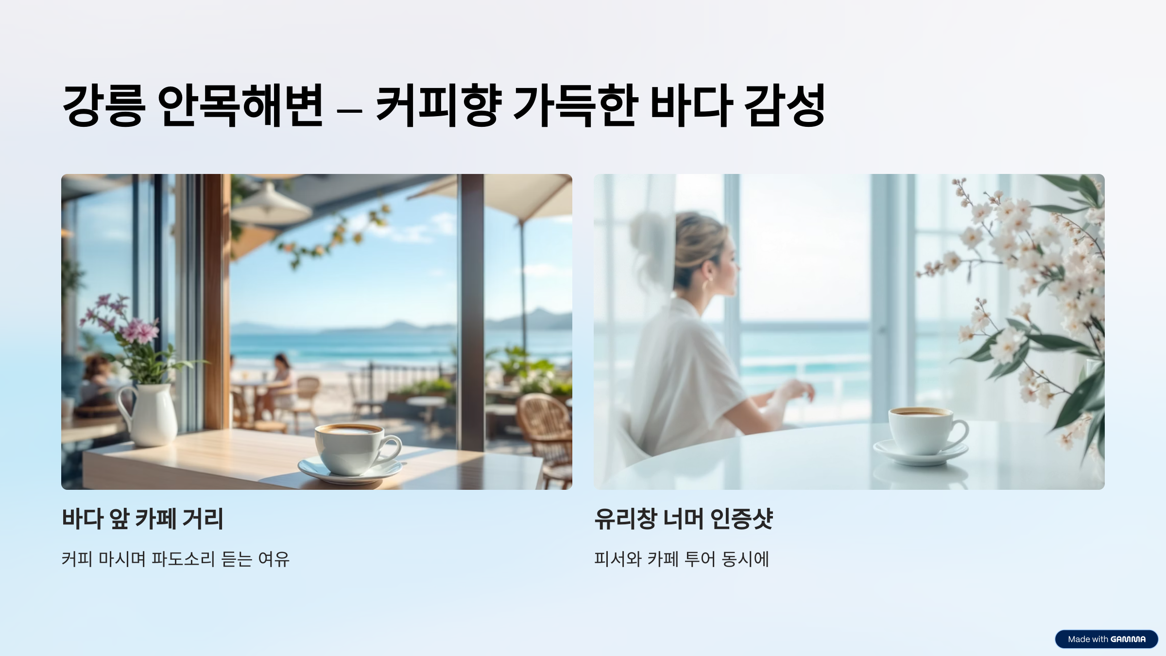 피서와 카페 투어를 동시에 즐기고 싶다면 안목해변이 답이죠!
