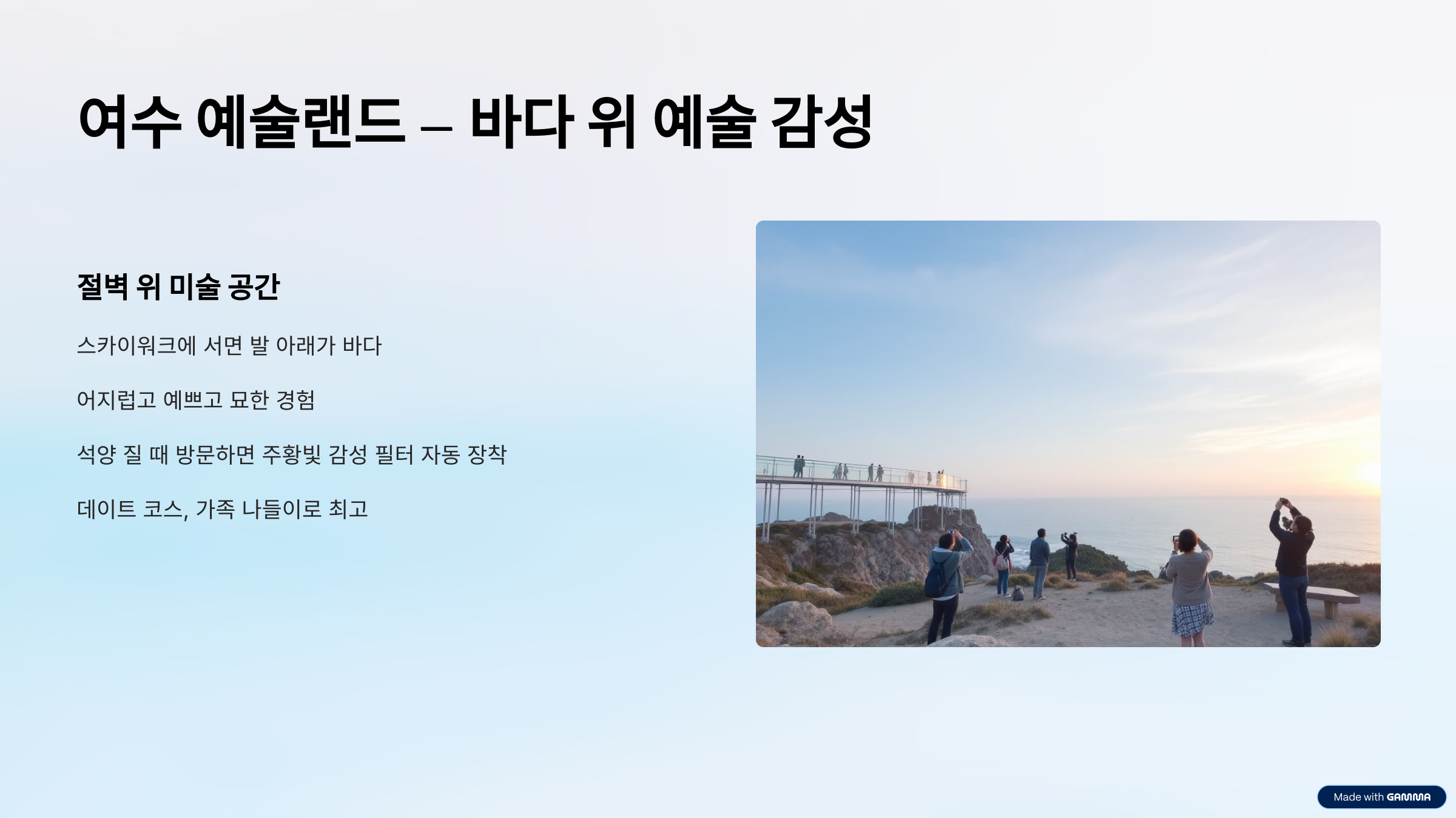 🎨 여수 예술랜드 – 바다 위에서 예술 감성 폭발💥